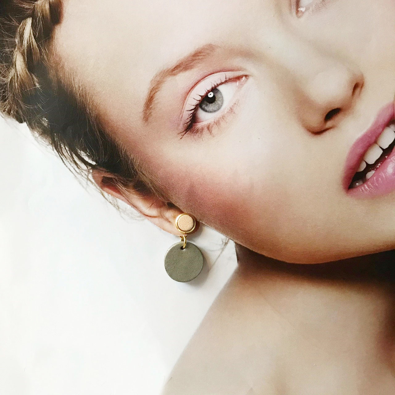 皮革耳環│圓框10號作品#6|小圓皮革款|混色搭櫻花粉