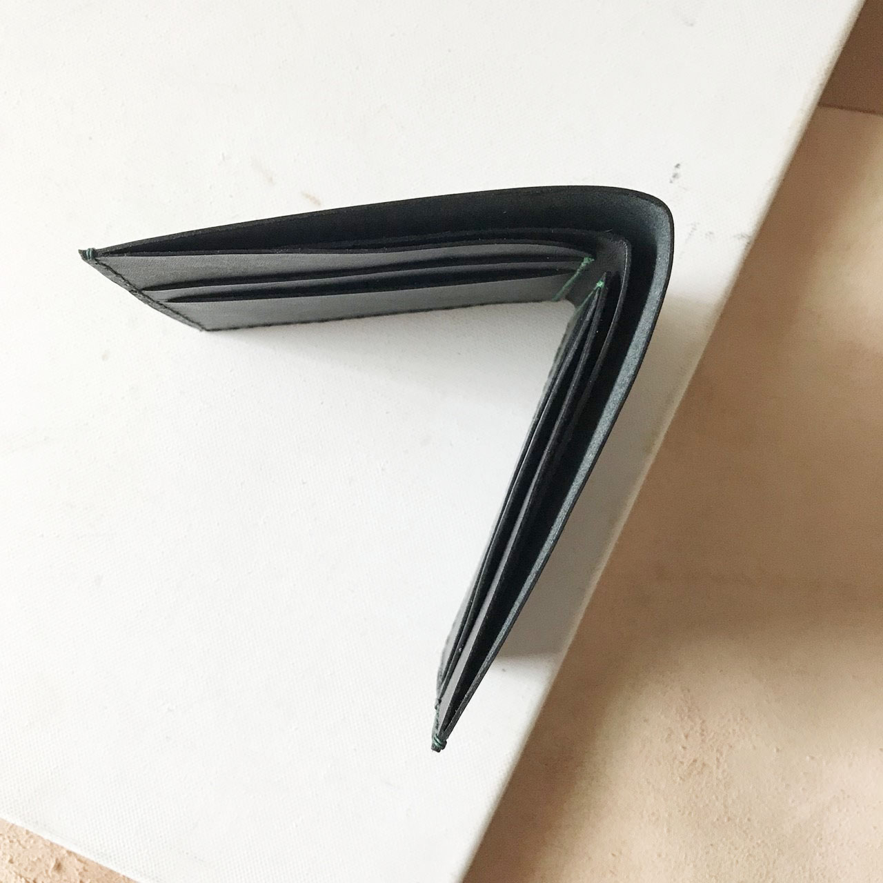 簡單造型短夾,有2鈔票層及4卡層,卡位斜邊設計細節簡單卻不簡單。